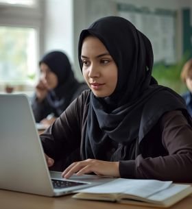 The Haya Experience Our classrooms unite bright young Muslim women from around the world — learning, growing, and leading together through shared values and global friendships.